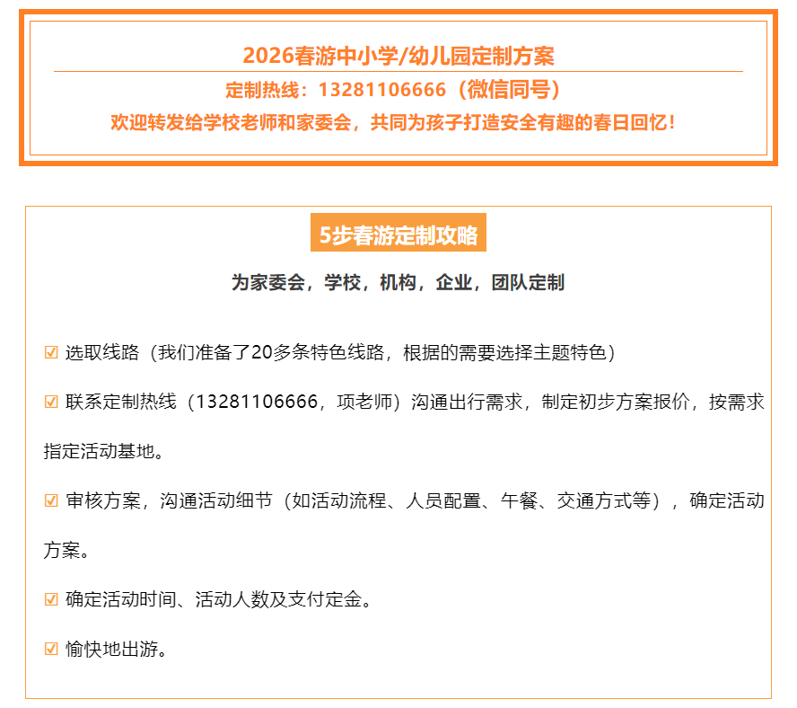 | 春天,你好!2026春游亲子/研学活动八大主题定制方案新鲜出炉!20多条成熟线路,覆盖所有年龄段! |